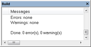 3 Choose Project>Make. The progress is as usual displayed in the Build messages window. The result of the linking is the code file MyFirstProject.out with debug information located in the Debug\Exe directory and a map file MyFirstProject.map located in the Debug\List directory.