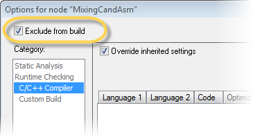 3 In the Workspace window, select MixingCandAsm - Debug, right-click, and choose Options from the context menu. Use the default settings in the General Options, C/C++ Compiler, and Linker categories. Select the Assembler category, click the List tab, and make sure the option Output list file is selected.