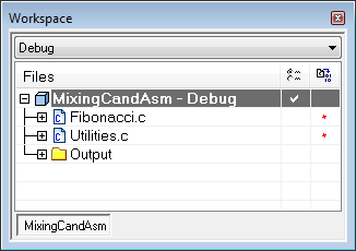 4 In the Workspace window, select MixingCandAsm - Debug, right-click, and choose Rebuild All from the context menu. The project is built with the assembler file instead of with the corresponding C file.
