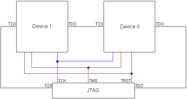 J-Link can handle multicore debugging. In this case multiple ARM devices are connected to the same JTAG connector as shown below: