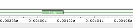 In the Interrupt Log window you can now see that a new interrupt has been generated. Double-click the Leave cell for the first interrupt; focus switches to the editor window and in the Interrupt Log graph in the Timeline window where the first interrupt is now illustrated by a green box.